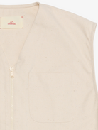 Meet the Yon, our sleeveless vest—an everyday essential made from sturdy ecru canvas. But here’s the fun part: this time it’s crafted from a unique blend of cotton and… pineapple. Yes, you read that right. 3% of the fabric comes from pineapple fiber, adding a sustainable twist to this piece.